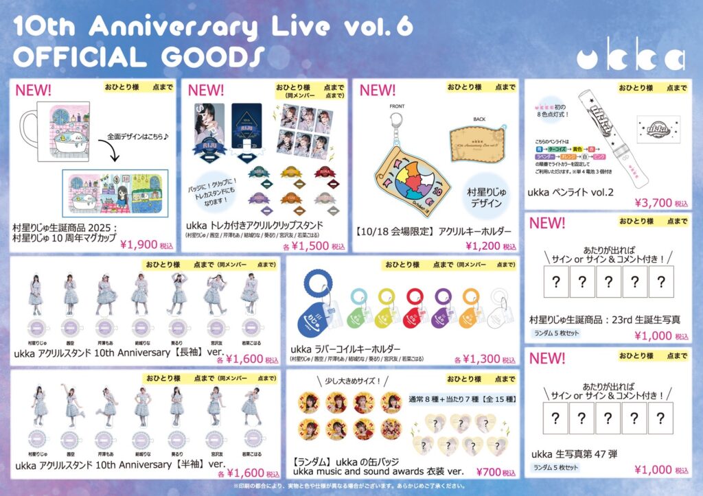 - 2025.10.15 Posted 10/18(土)ukkaワンマンライブ『ukka 10th Anniversary Live vol.6』物販情報