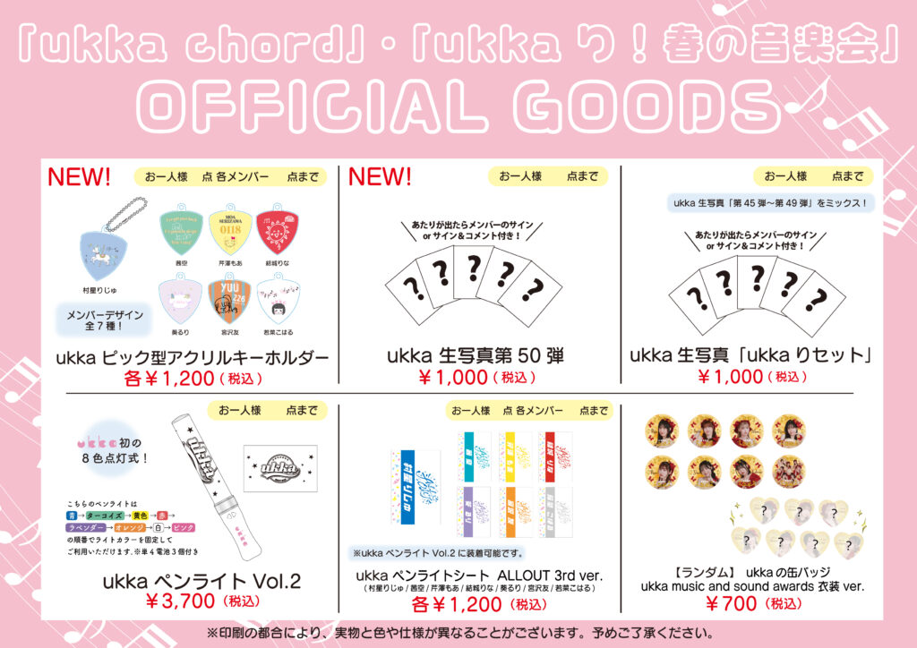 2/24(火)ukkaギター部ライブ 「ukka chord」、ukka音楽会「ukkaり!春の音楽会」@原宿RUIDOでは物販ブースにて下記商品を販売いたします!